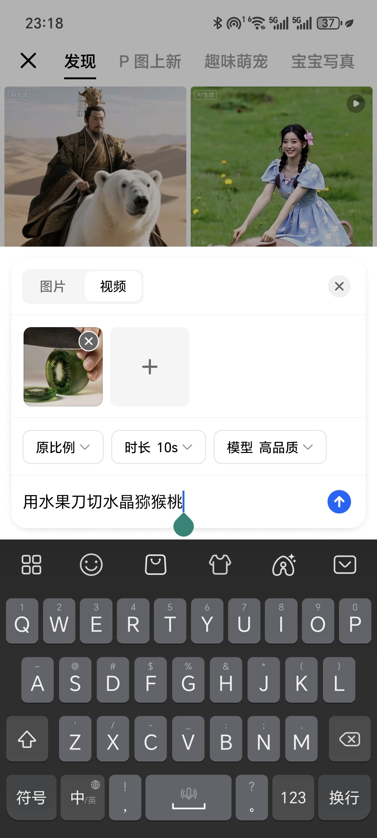 这里以”豆包“为例,进入“豆包”选择AI创作,然后选择生成视频。可以调整比例、时长和质量。最后通过给AI提供提示词来使AI生成视频。